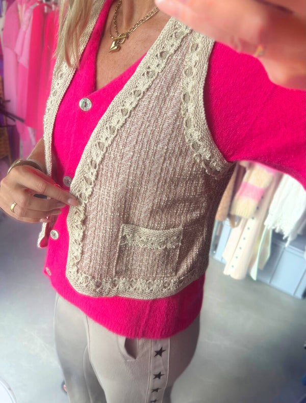 Gilet Ibiza licht roze met subtiel gouden glittertje