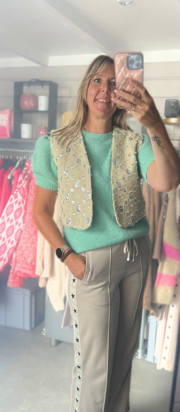 Dit is toch een super leuk glitter gilet. Dit gilet is eindeloos te combineren en het hele jaar door te dragen.