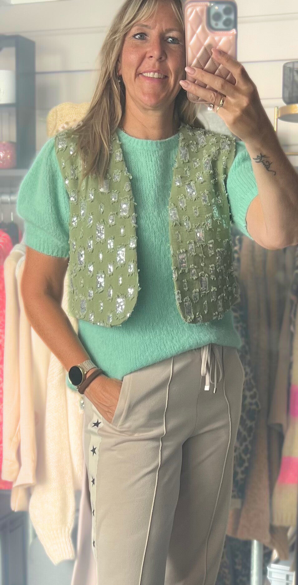 Gilet met kleine pailletten Ambika groen