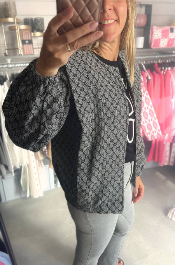 Jacket open bomber oversized print grijs