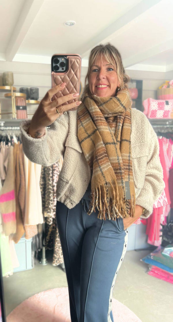 Wintersjaal geruite print bruin/beige