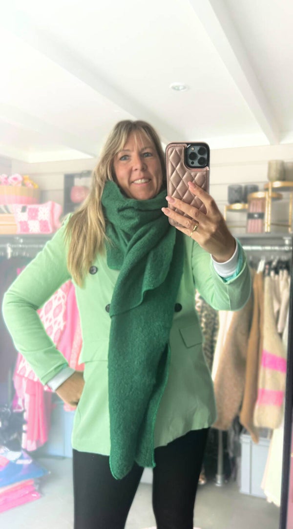 Deze donkergroene wintersjaal is heerlijk zacht en valt lekker soepel. De donkergroene kleur is erg warm en diep, waardoor deze sjaal makkelijk te combineren is met verschillende kleuren jassen.