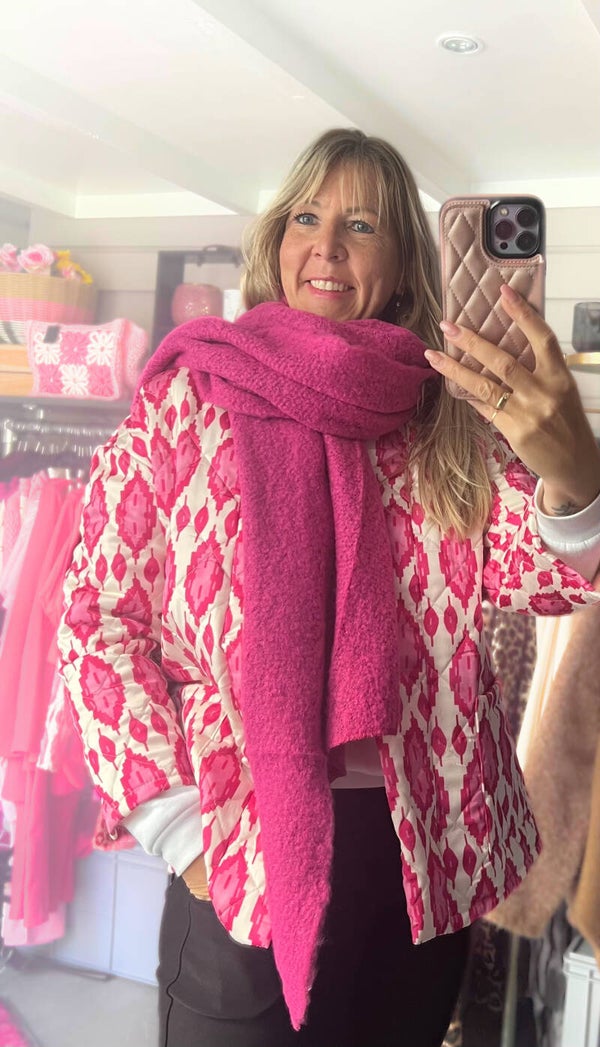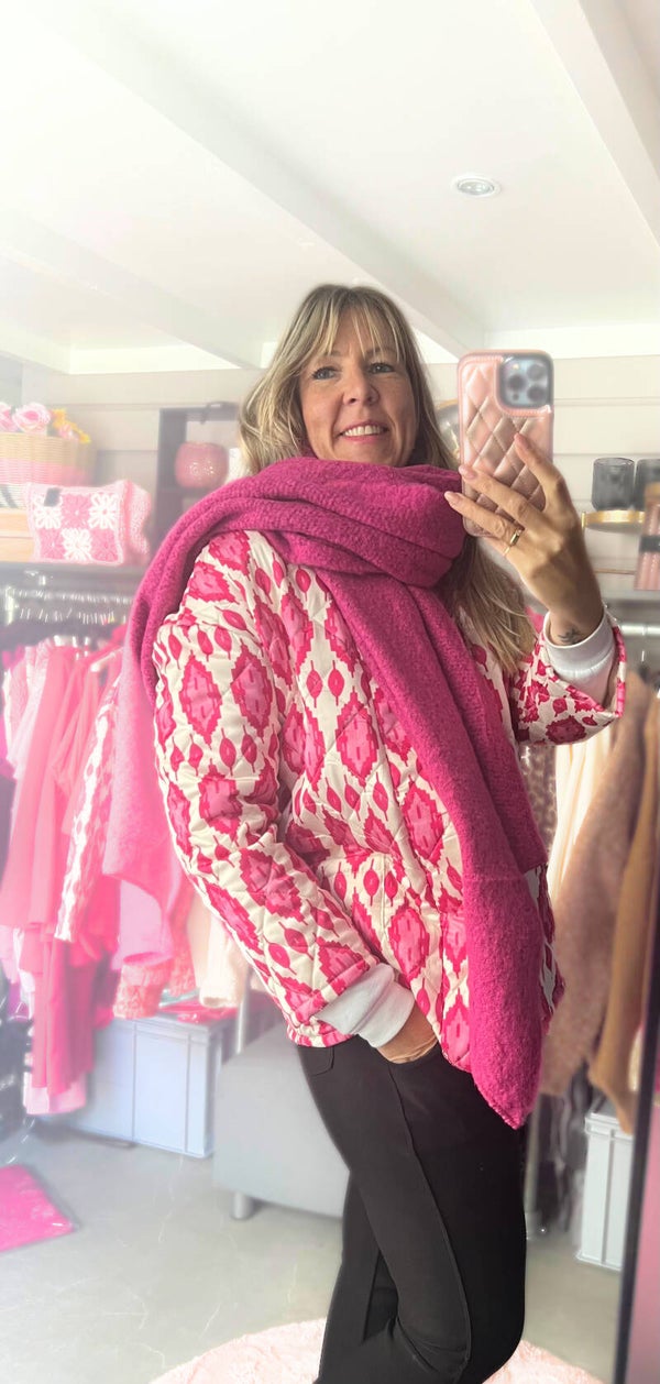 Deze rosé wintersjaal is heerlijk zacht en valt lekker soepel. De kleur is erg warm en diep, waardoor deze sjaal makkelijk te combineren is met verschillende kleuren jassen.