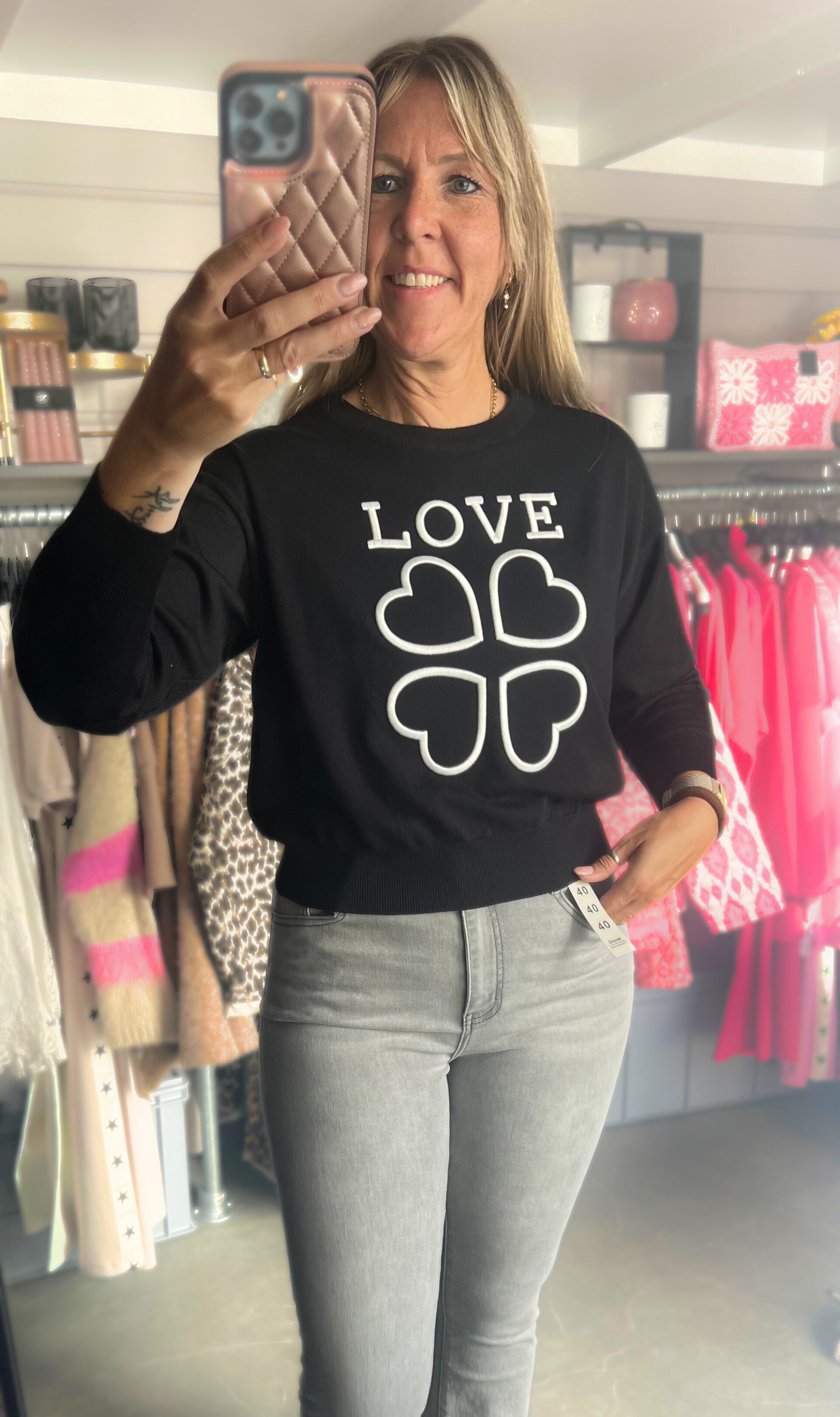Deze trui geeft iedereen toch de liefde en het geluk!! Dat kan toch niet anders met een klavertje 4 en hart.