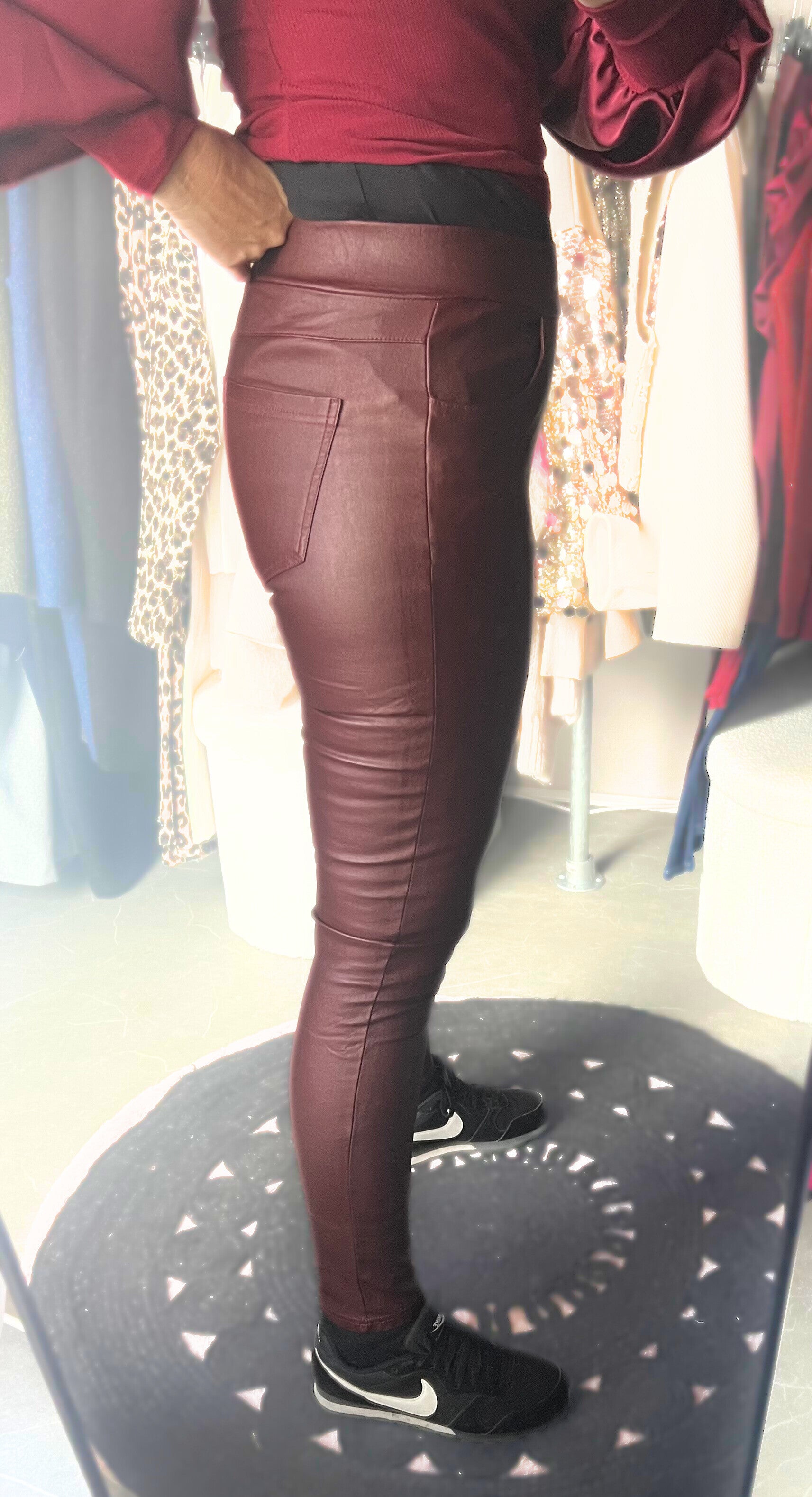 Deze skinny fit stretchbroek van imitatieleer. De broek is licht bontgevoerd dus lekker zacht en warm. Draagt erg comfortabel omdat er super veel stretch in zit. De broek heeft ook 2 zakken aan de voorkant en 2 achterzakken.