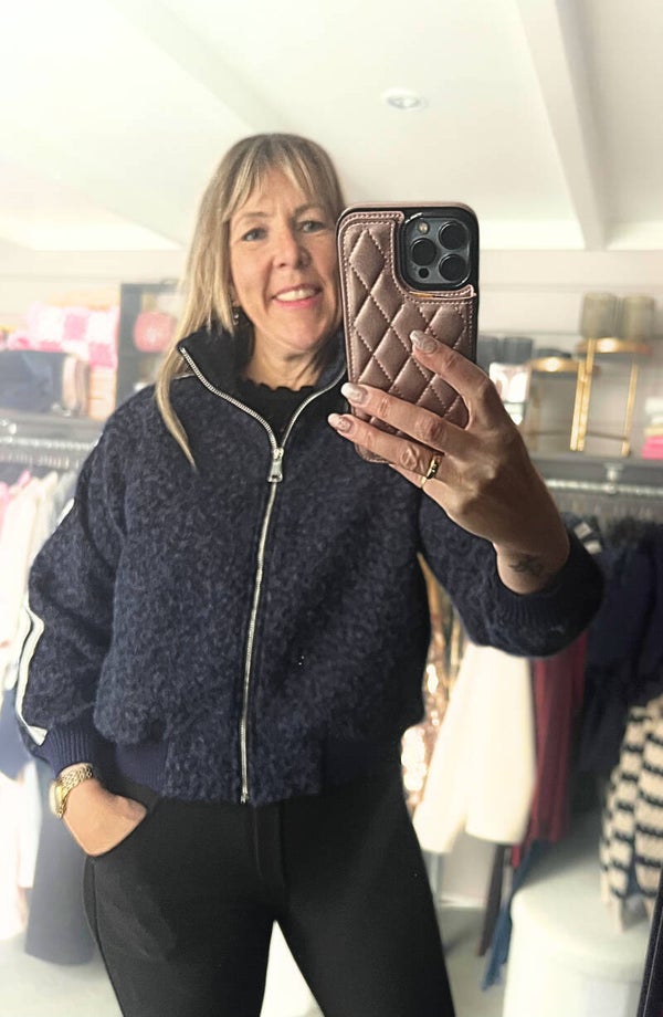 Bomber Sporty Fluffy Stripe Marine Blauw