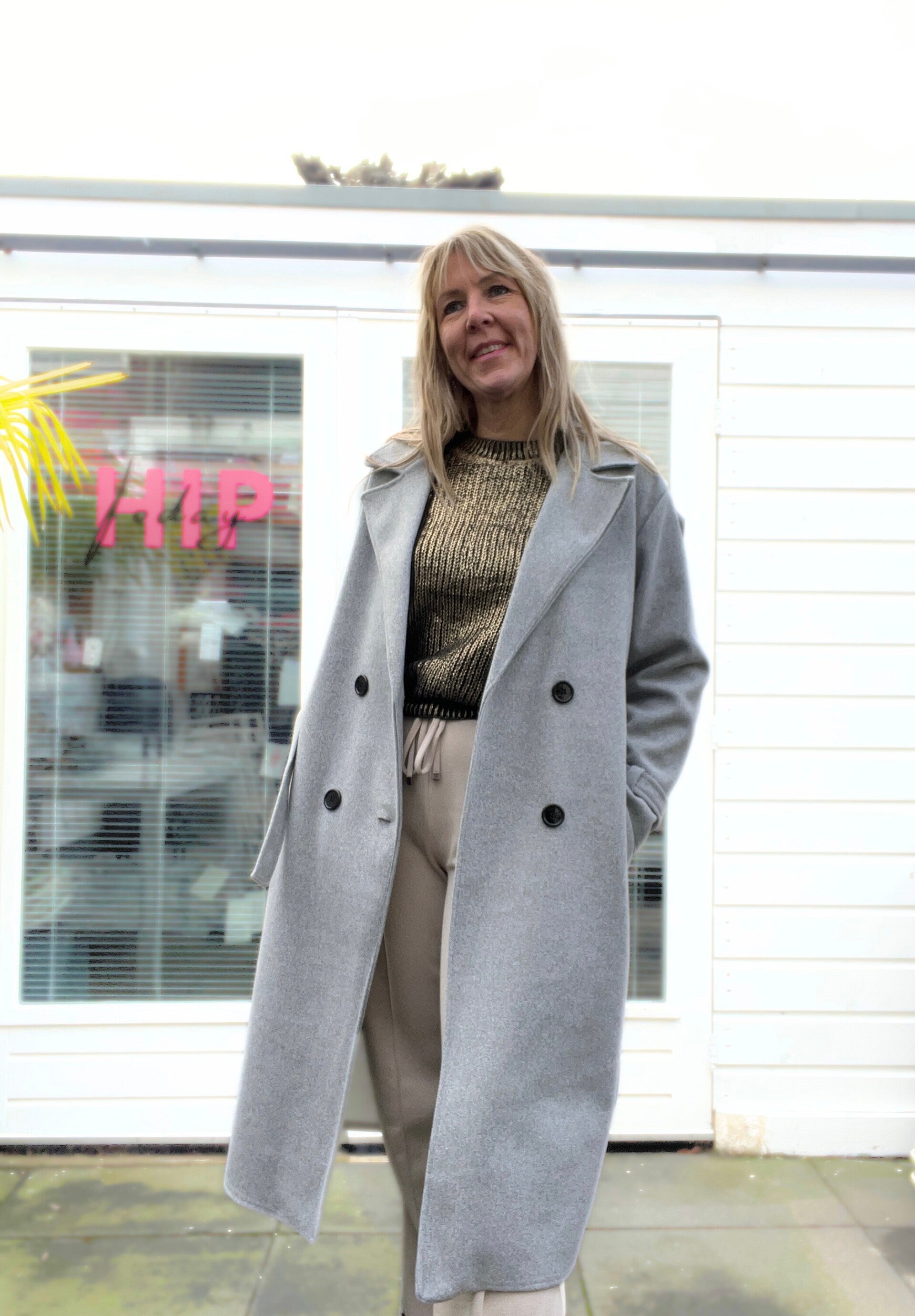 Trenchcoat halflange jas Grijs
