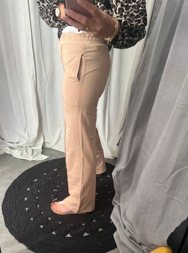 Je shopt deze broek in het Zwart, Beige, Camel en Licht blauw. En in de maten S-M en M-L.