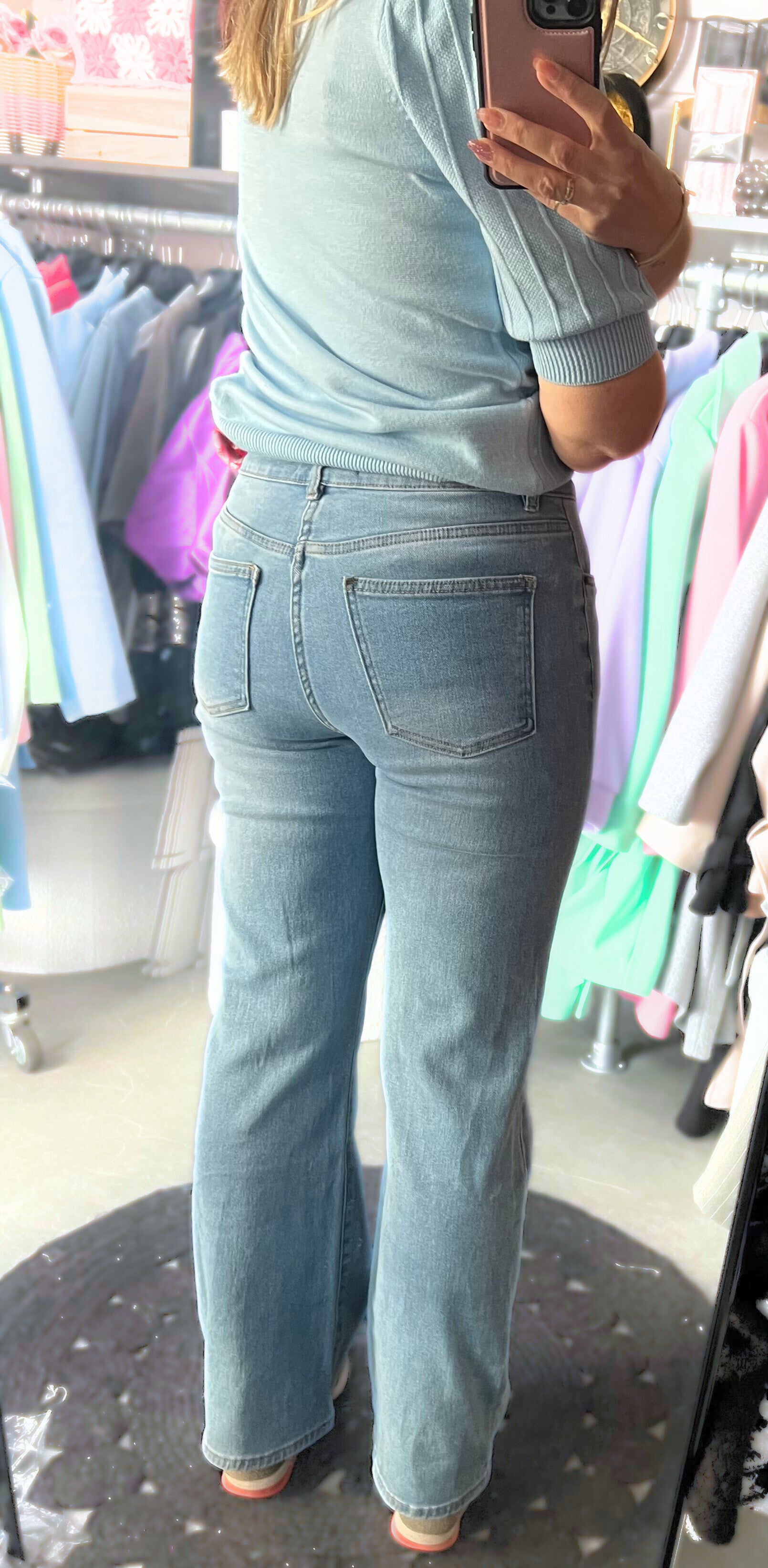 Deze Norfy jeans heeft een mooie, klassieke wide leg. De jeans heeft een lichtblauwe wassing en is daardoor goed te combineren met zowel donkere als lichte kleuren.