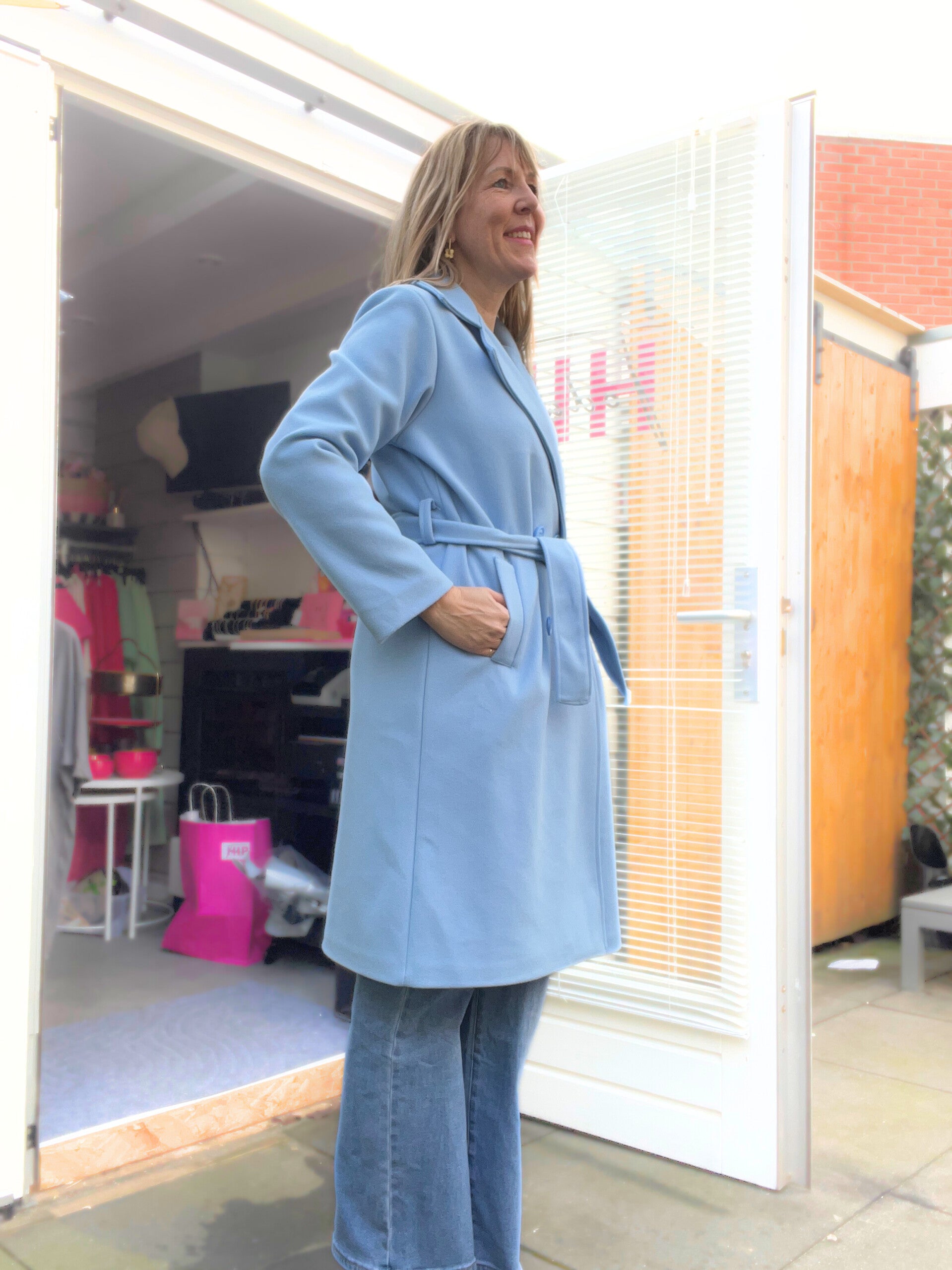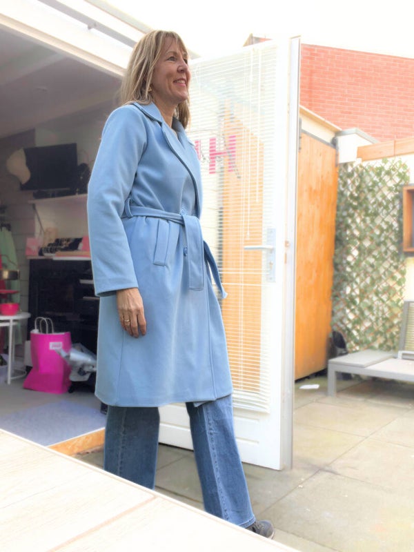 Deze jas valt net over de knieën. Door de ceintuur kun je de jas mooi tailleren en creëer je een vrouwelijke silhouet.