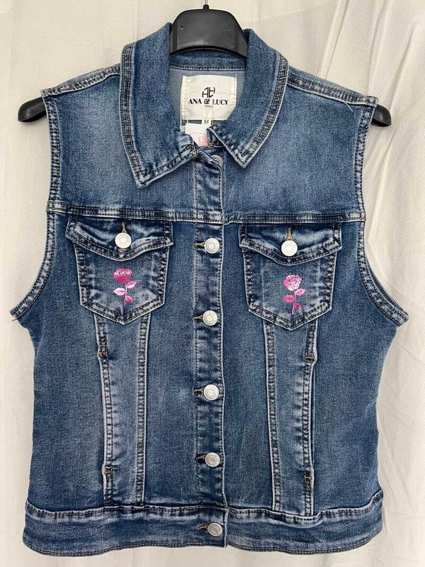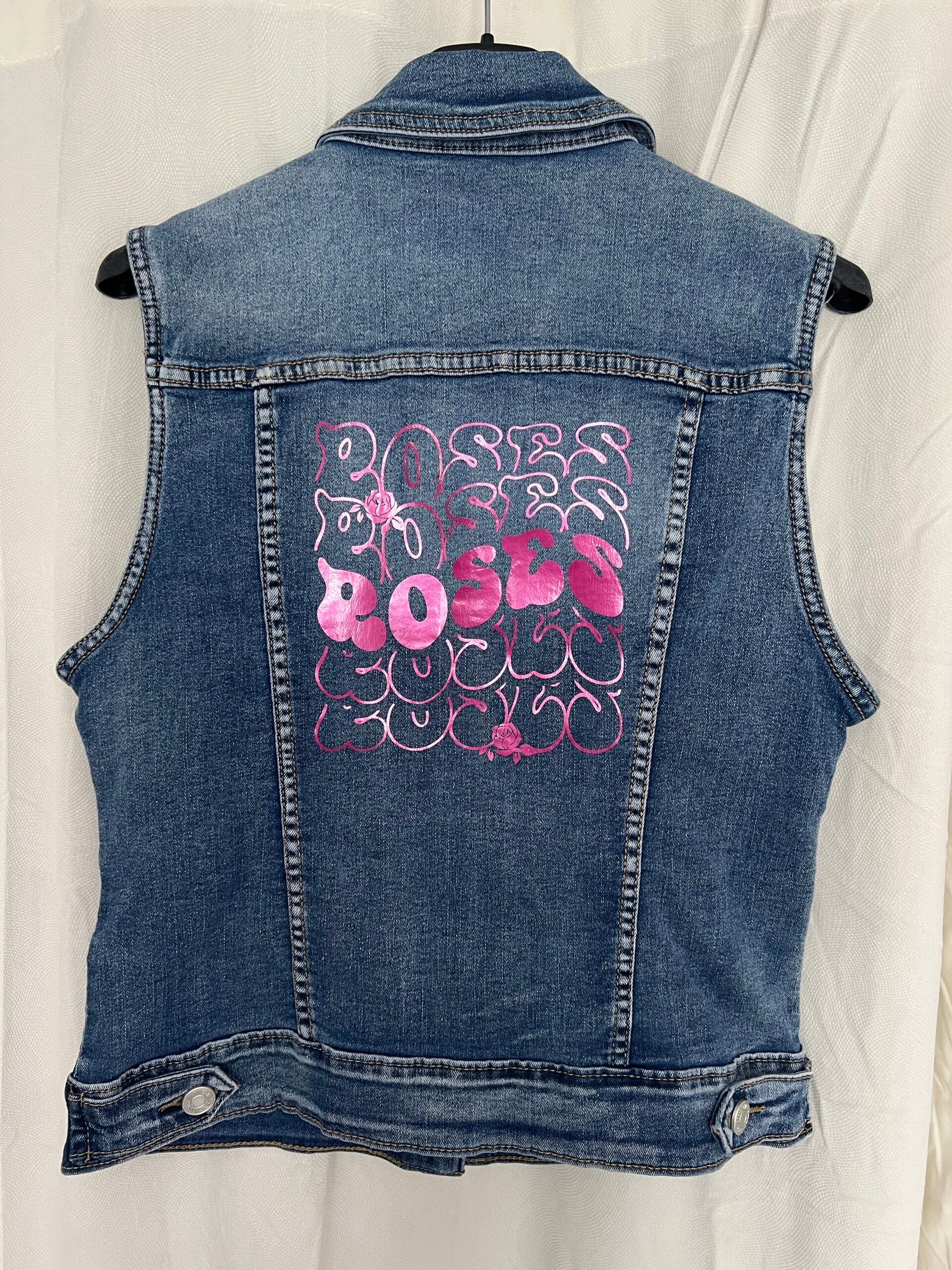Stoer meets sweet! Dit spijker gilet met roze rozenprint brengt een romantische touch aan je edgy look. Perfect voor een girly vibe met een rauw randje.