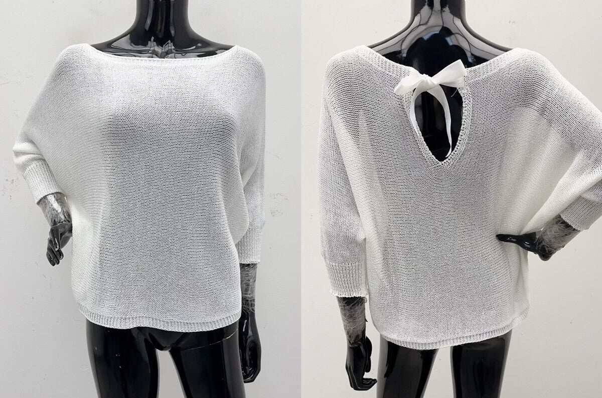 Fijn gebreide trui met strik wit