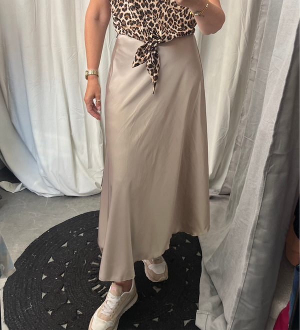 Onze satijnen maxi rok is dé perfecte mix van luxe en comfort. Gemaakt van soepelvallende satijnstof die elegant met je meebeweegt en je outfit meteen een chique touch geeft. Of je nu een etentje hebt, een feestje, of gewoon zin hebt om jezelf in de watten te leggen – deze rok past bij elke gelegenheid.