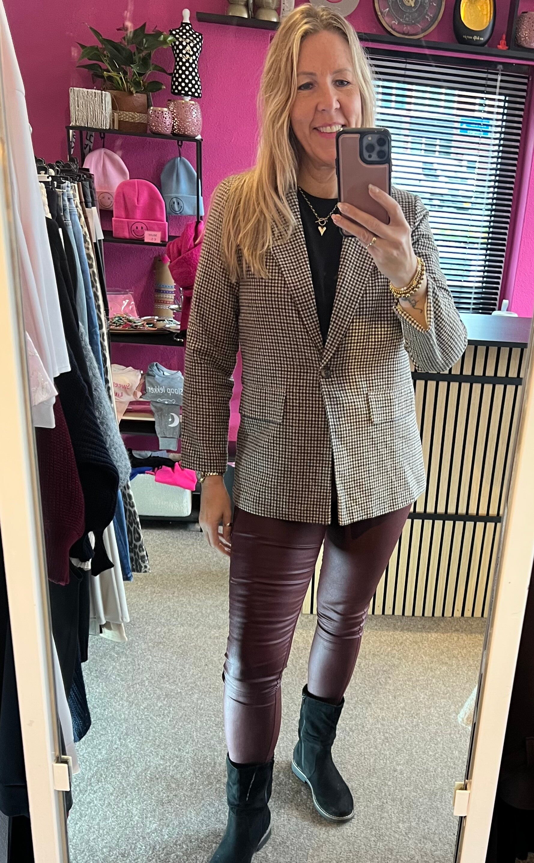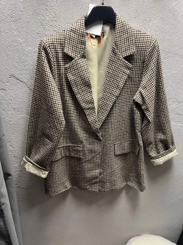 Deze geblokte blazer is het perfecte statement item om jouw herfstlook compleet te maken. De mooie lengte geeft een elegante uitstraling, terwijl de opgestikte nepzakjes en de enkele knoop zorgen voor een stijlvolle en moderne finishing touch.