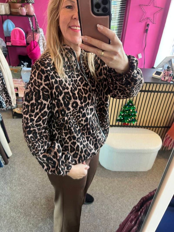 Dit jasje heeft een oversized fit, een leuke print, steekzakken en wordt gesloten met een rits.