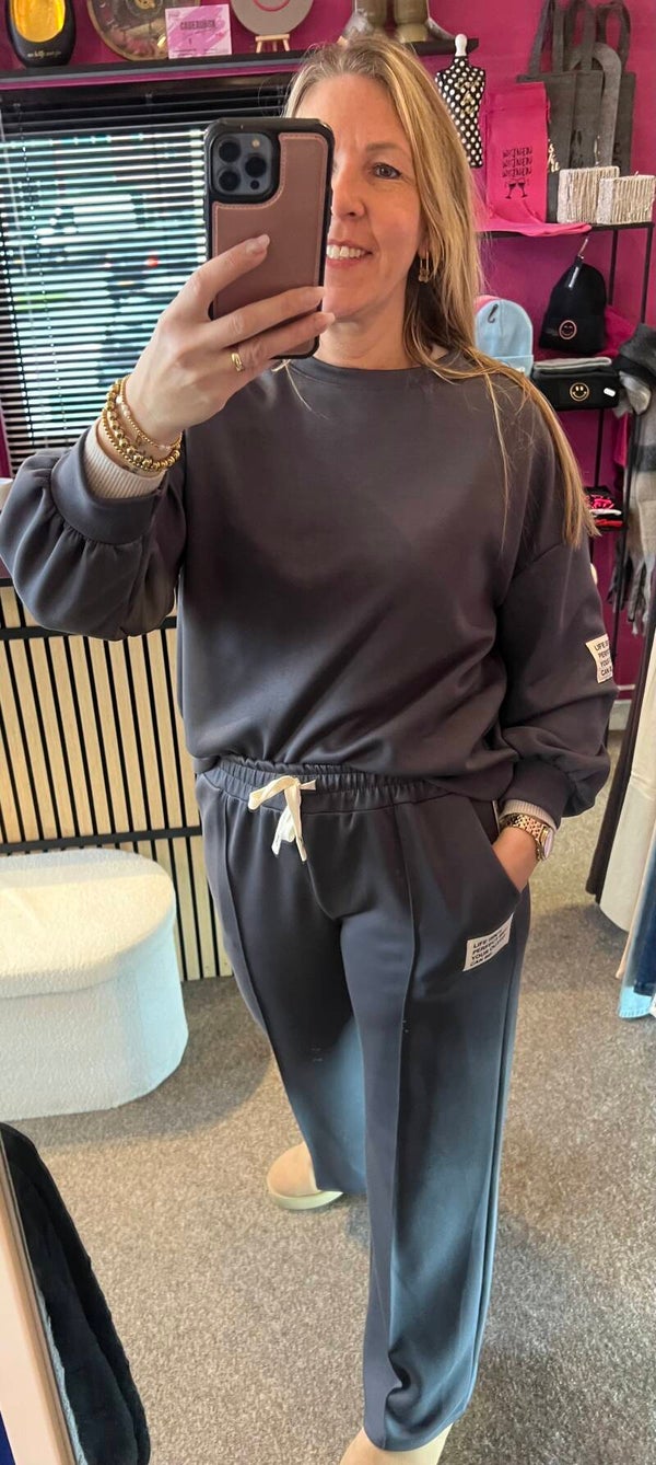 De "Life isn't perfect but your outfit can be" set lange mouw Donker grijs