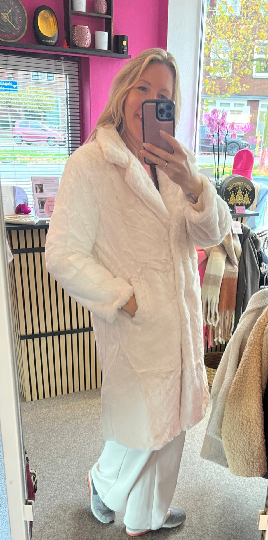 Bontjas imitatie bont Fake fur Coat lang Gebroken wit